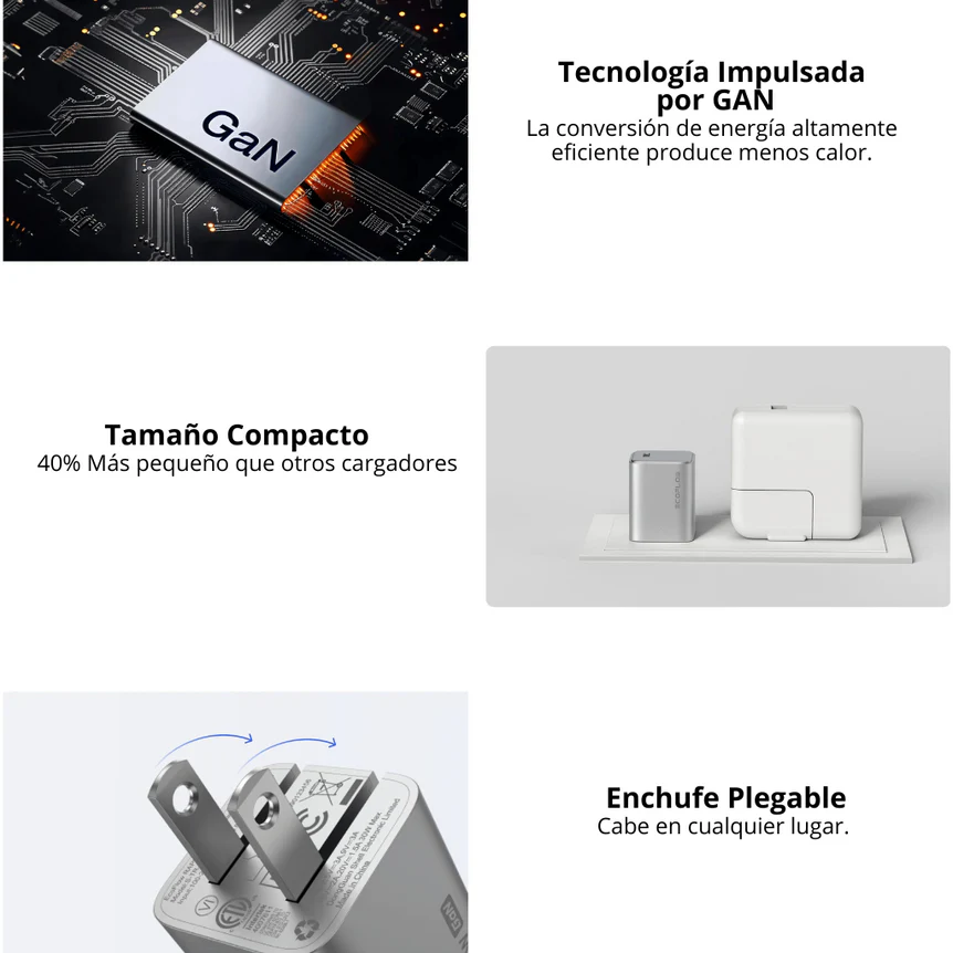 Cargador GaN EcoFlow Carga Rapida 20 W USB-C