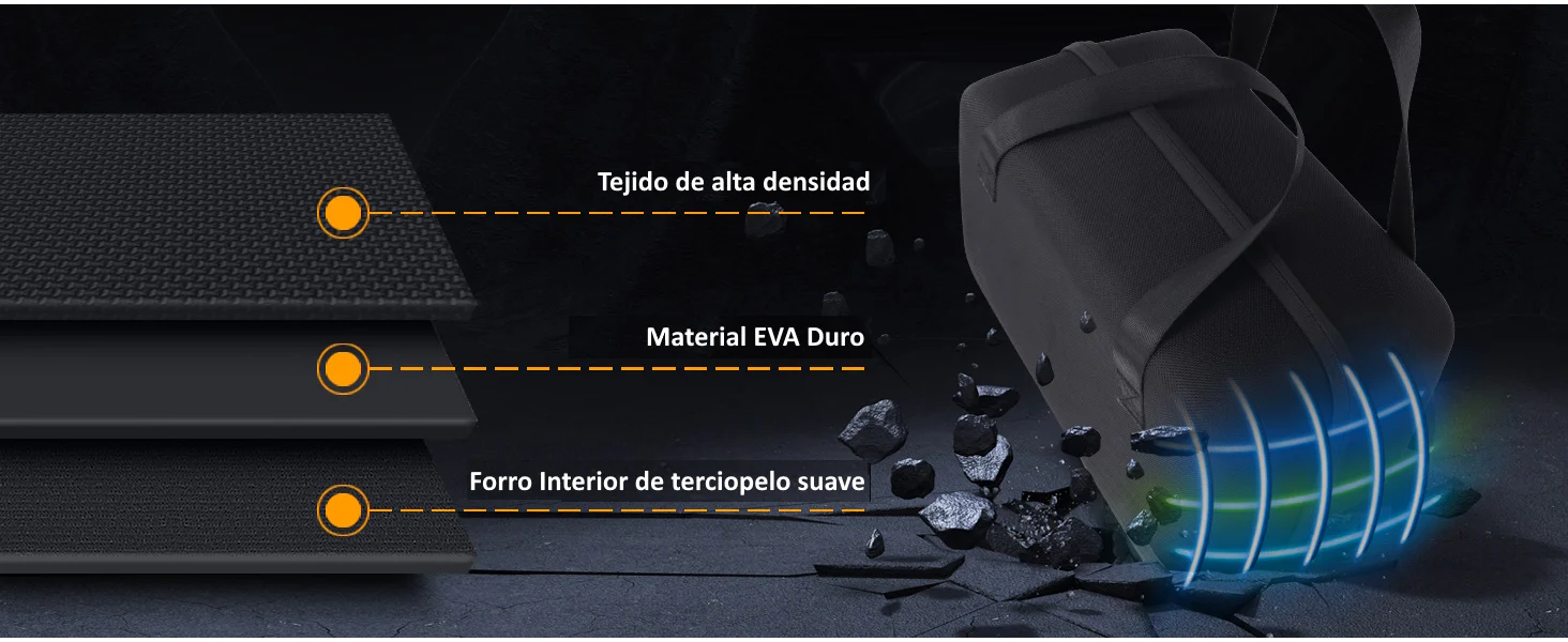 El interior acolchado y antiestático previene arañazos, abolladuras y daños por impacto. Cuenta con una cremallera robusta y una práctica correa de mano para facilitar el transporte. Su diseño espacioso permite guardar tanto la estación RIVER 2 como accesorios adicionales.