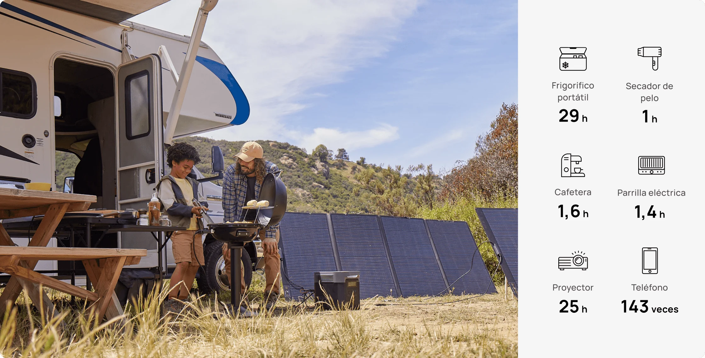 Alimentar sus dispositivos. Las estaciones eléctricas portátiles EcoFlow convierten la corriente continua en corriente alterna, que puede utilizarse tanto en interiores como en exteriores.