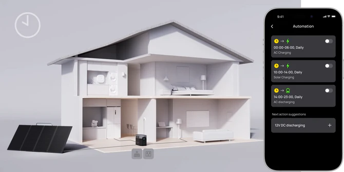 Transforma tu estación de energía en una solución de energía solar conectada a la red que combine paneles solares, una estación de energía y un inversor. Suministra electricidad a tu hogar y ahorra en las facturas eléctricas tanto de día como de noche.