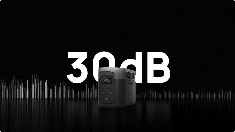 Con solo 30 dB, el DELTA 2 Max es más silencioso que otras estaciones de energía de 2 kWh del mercado. * Desde una distancia de aproximadamente 50 cm, el nivel de ruido es de 30 dB (con entrada baja y salida de 500 W) en comparación con otras estaciones de energía, con 55 dB o más.