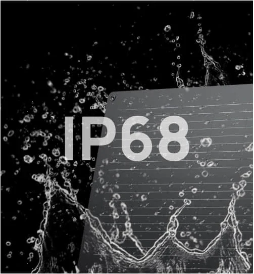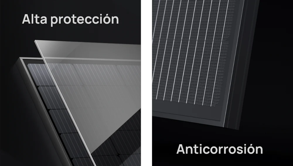 Nuestro panel solar rígido de 100 W está diseñado para exteriores. Con un grado de impermeabilidad IP68*, el panel es resistente a la suciedad y la pulverización de agua a baja presión, así como a vientos extremos de hasta 130 mph (209 km/h) y fuertes nevadas. *La resistencia al agua y al polvo se probó en condiciones controladas de laboratorio con un índice IP68 según la norma IEC 60529 (profundidad máxima de agua de 1 metro durante un máximo de 72 horas).