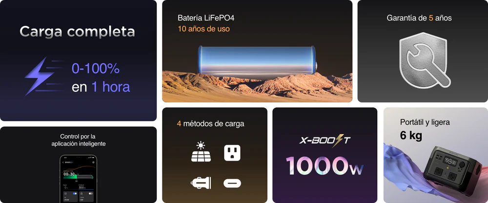 Con la mejora en la batería LFP, su química permite cargar la River 2 Max hasta 3000 veces. Eso es bastante, 10 años cargando a diario, es 6 veces más que el promedio de la industría. Con celdas LFP la serie River 2 es segura, durable, altamente eficiente incluso en climas extremos o altas temperaturas.